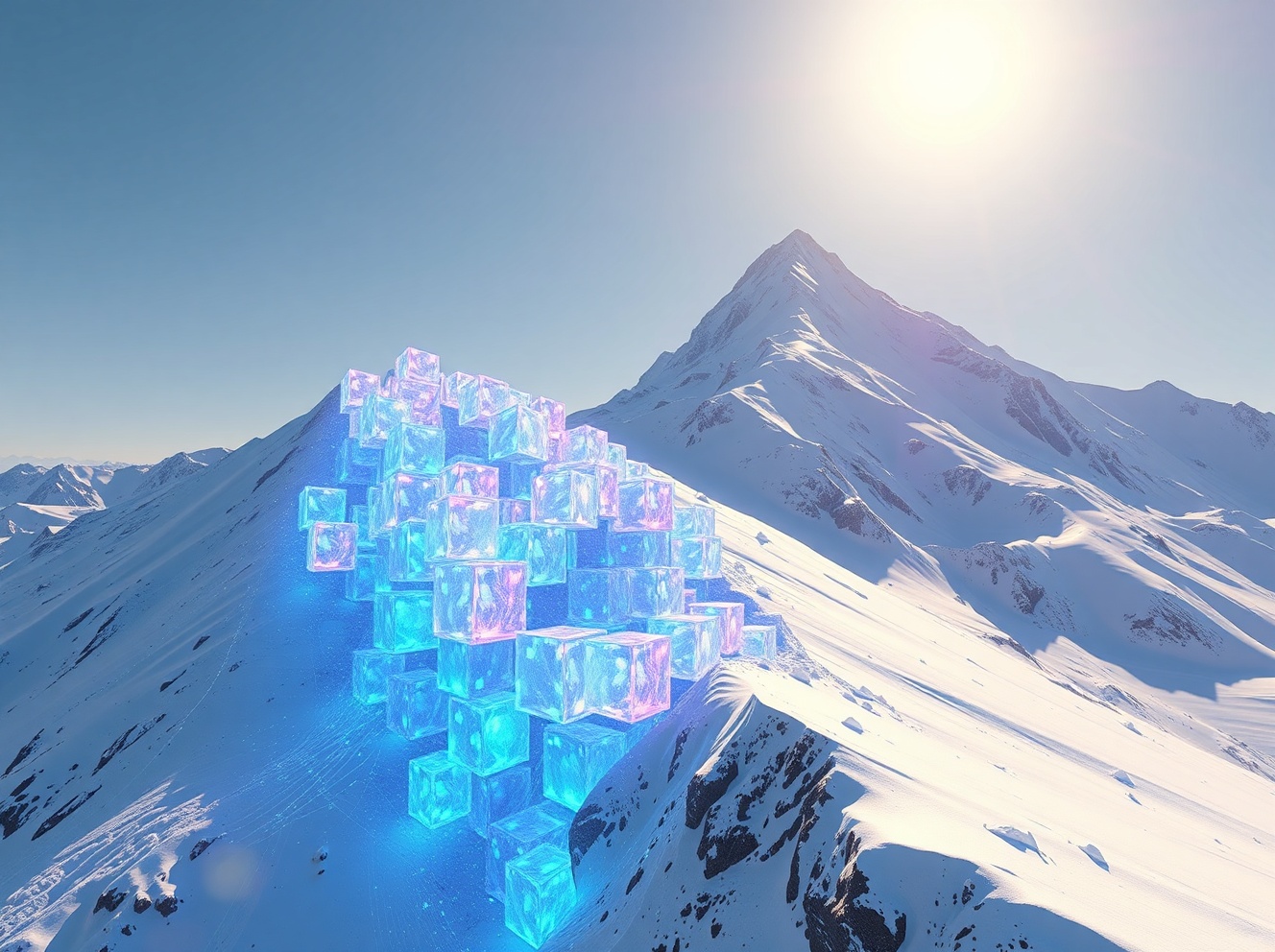 Avalanche AVAX price prediction 2026 2030: digital blocks cascading down a mountain, representing blockchain growth and market potential.