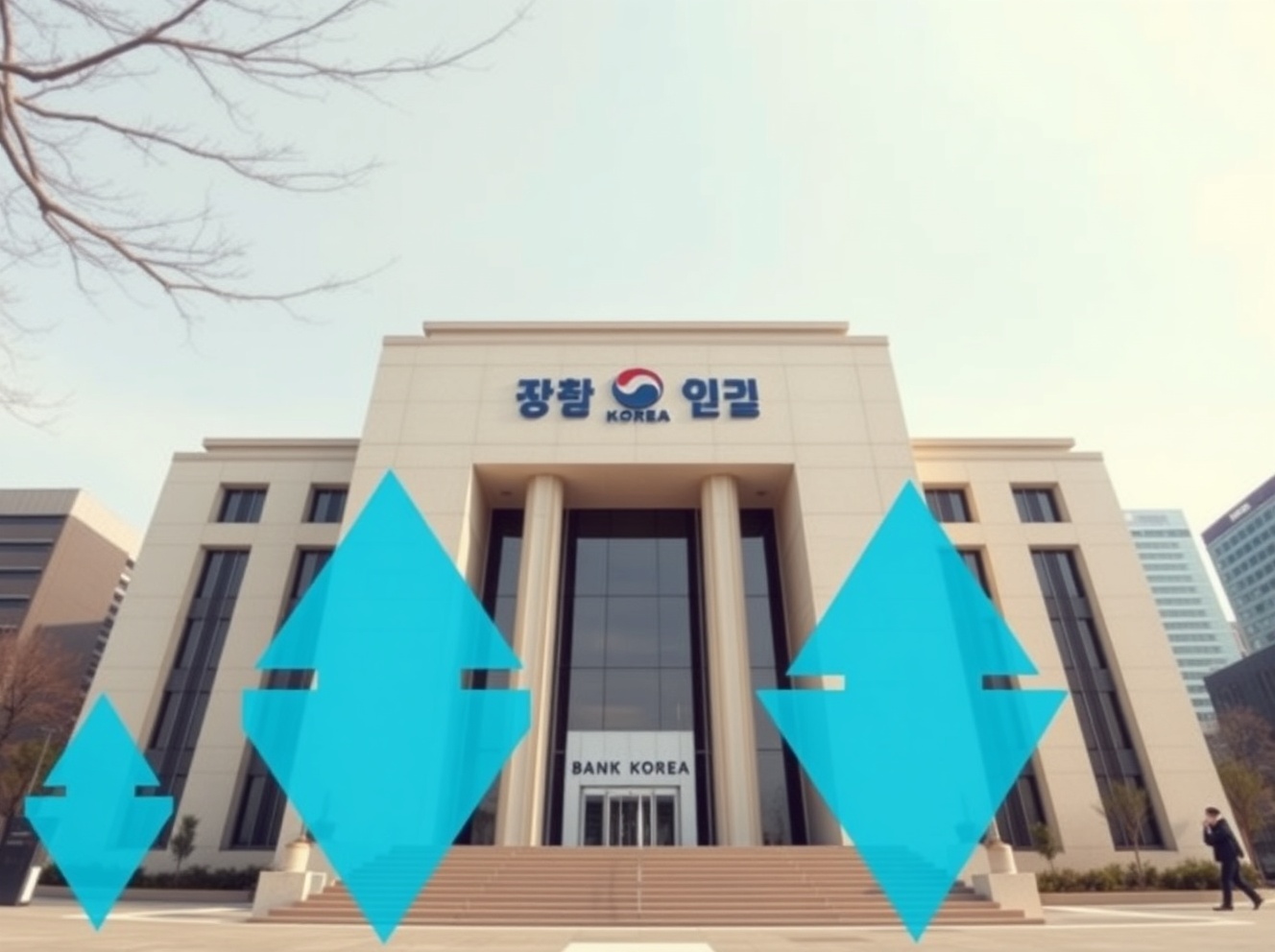 Bank of Korea headquarters during currency market intervention as won depreciates against US dollar