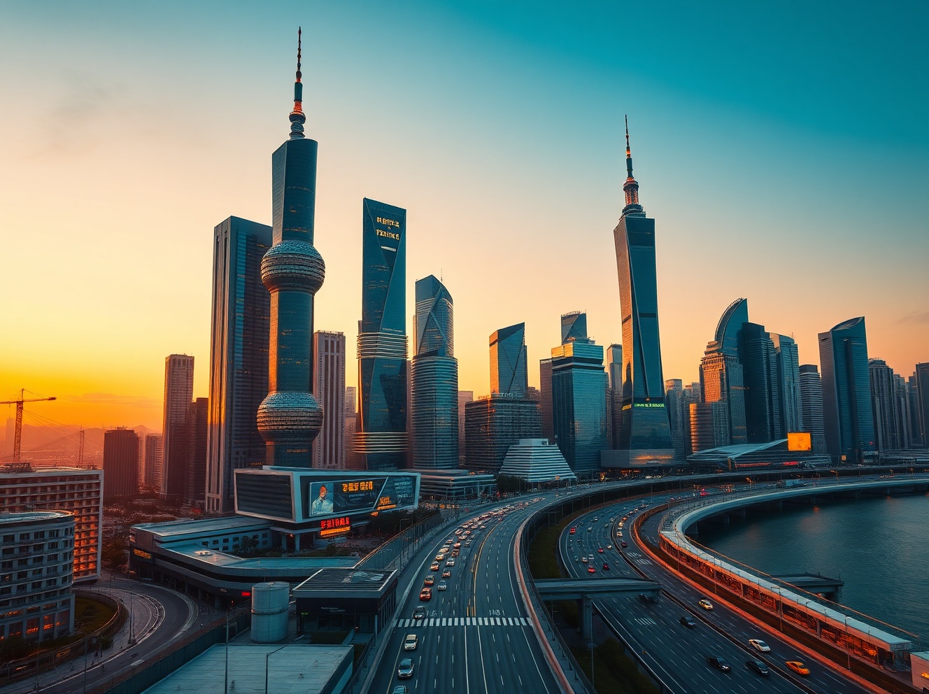 China's economic growth reflected in Shanghai's modern financial district skyline at dusk