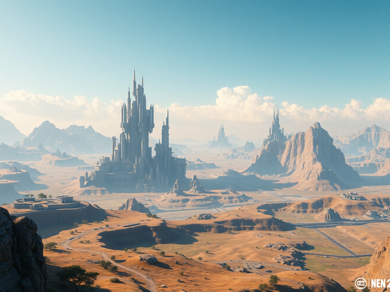 The DreamWorld MMORPG is an AI-powered sandbox game featuring a persistent world where all players participate simultaneously. Key differentiators include AI technology that generates 3D architectural components from text input, fully destructible terrain, and terraforming capabilities that allow permanent environmental changes.