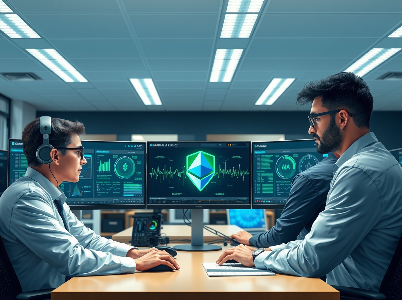 ETH Rangers cybersecurity team monitoring Ethereum blockchain security in a command center.