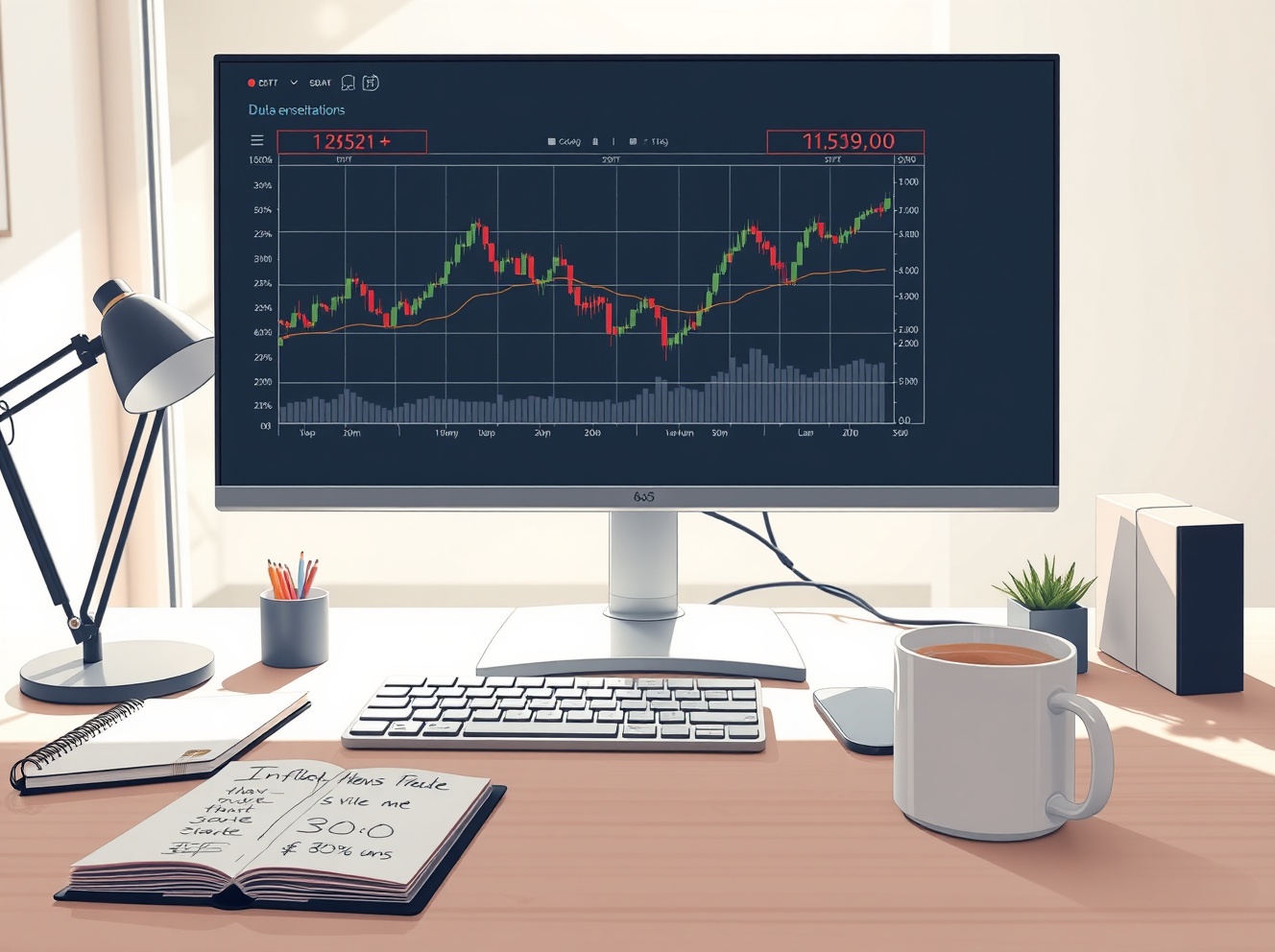Financial trading desk monitoring currency charts ahead of US inflation data release