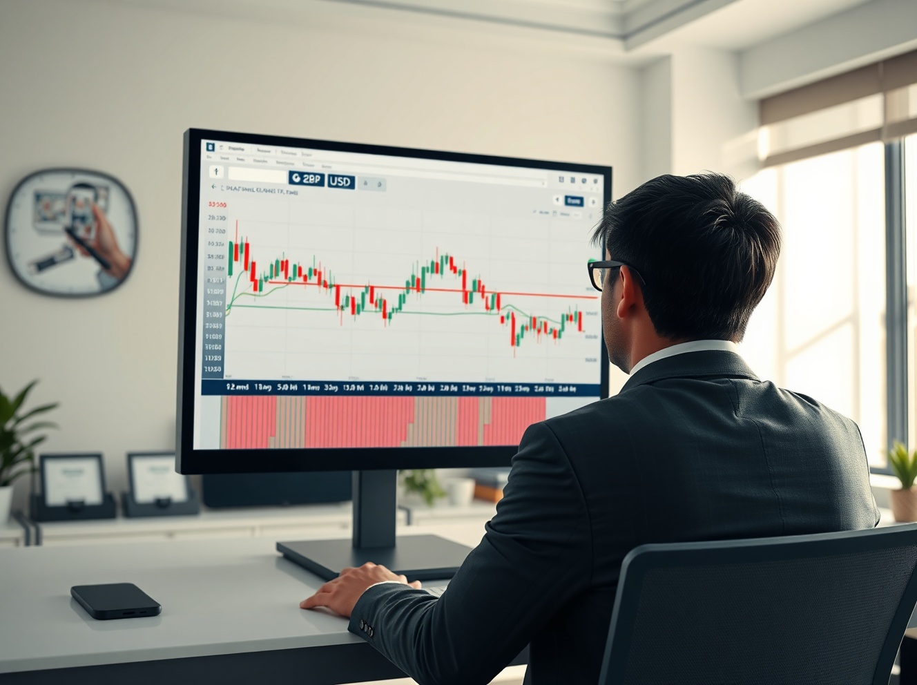 Financial analyst reviewing GBP/USD chart showing fading momentum for Pound Sterling.