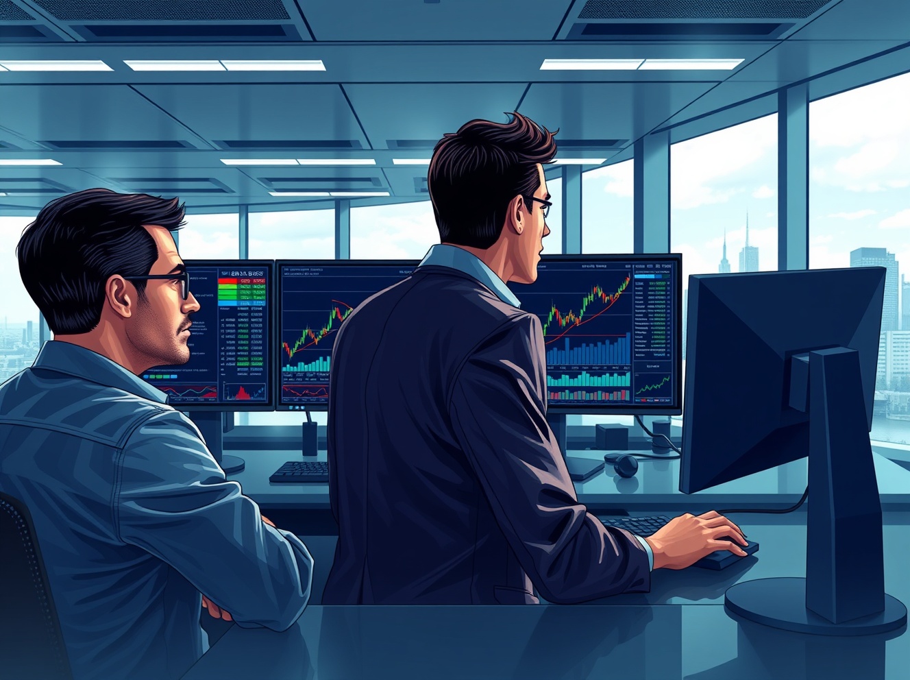 Forex traders analyzing GBP/USD exchange rate rebound on trading desk monitors.