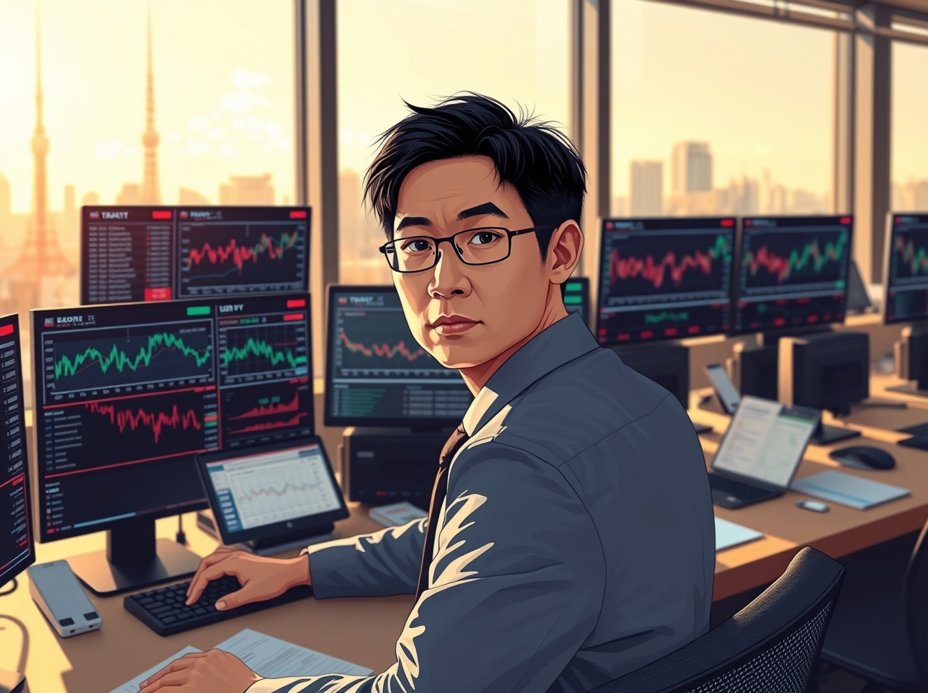Tokyo financial analyst monitoring Japanese Yen currency trading data ahead of US inflation report