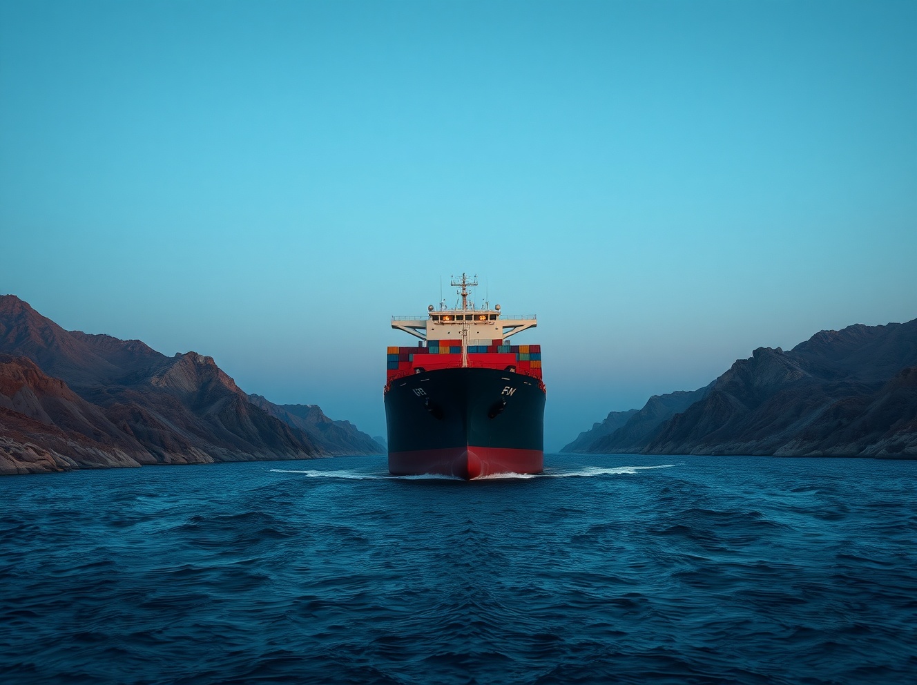 Cargo ship navigating the strategic Hormuz Strait, illustrating the geopolitical risk impacting NZD/USD and USD demand.
