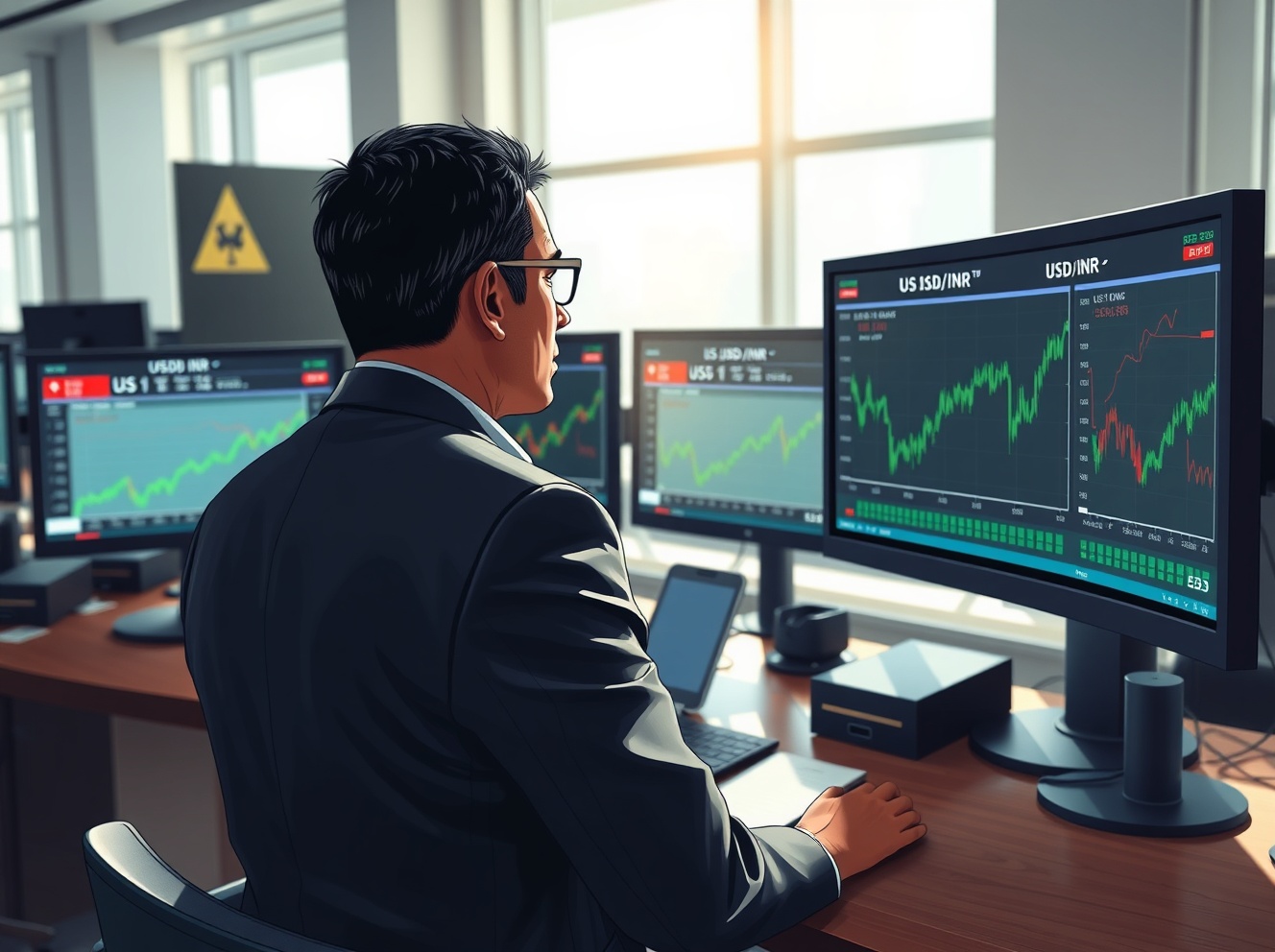 Trader analyzing USD/INR exchange rate movement amid US-Iran geopolitical developments