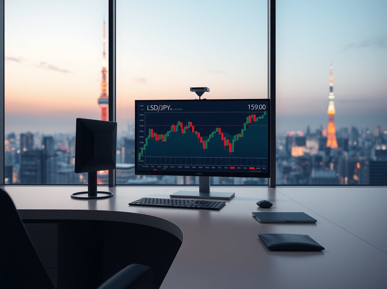 USD/JPY forex chart analysis on a trading desk in Tokyo as the pair nears 159.00.